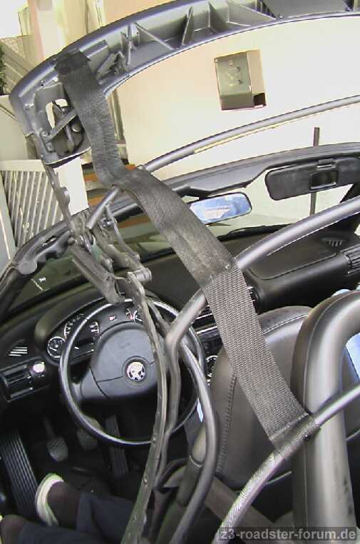 Wenn ich mich recht entsinne, verliefen die hinteren Gurte vorher parallel zu den Kanten der Seitenscheibe und waren am Spriegel mehr oder weniger direkt neben den nach vorn laufenden Gurten angebracht - m.e. mit zwei Nieten befestigt.