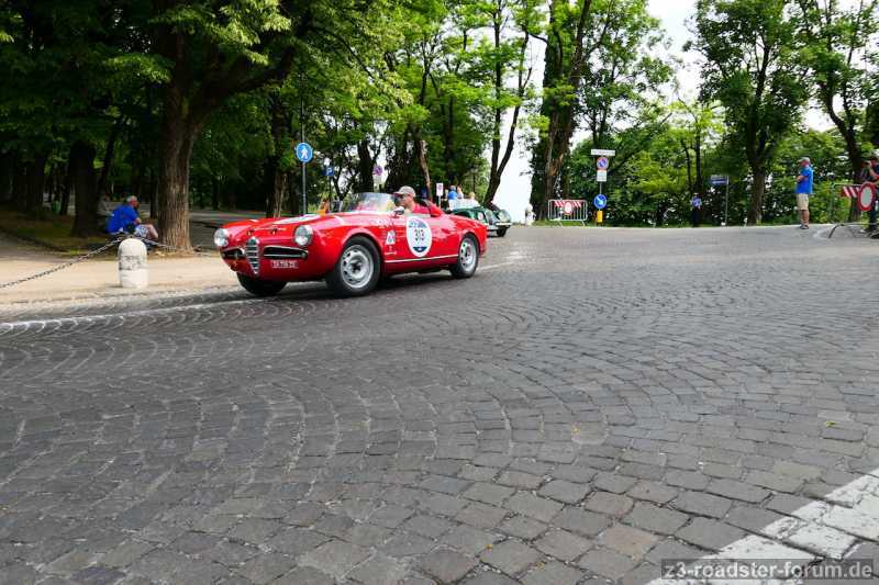 Ich war am Starttag von ca. 10.00 bis nach 18.00 Uhr unterwegs und habe die rd. 460 teilnehmenden Autos in der Innenstadt von Brescia ganz aus der Nähe und später bei der Startrunde in voller Fahrt erleben dürfen.