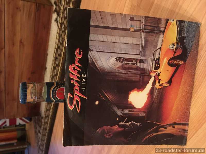 da gibt es noch eine lustige Geschichte....Ich hatte auf meinem Schreibtisch ein paar schöne Spitty-Fotos stehen. Darauf hat mich ein Arbeitskollege von Service angesprochen und mir erzählt, dass er auf der IAA in Frankfurt 1978 nach Abbau der Messe-Stände einen ganzen Karton voll Single-Schallplatten (25 Stück) vom Triumph/Layland D-mit dem Titeln Spitfire live und Cruising Spitfire mitgenommen hatte. Ich hab ihm dann angeboten, dass ich die Platten zum guten Preis in Holland auf dem Spitty-Treffen verkaufe und wir mit dem Erlöß dann halbe/halbe machen...