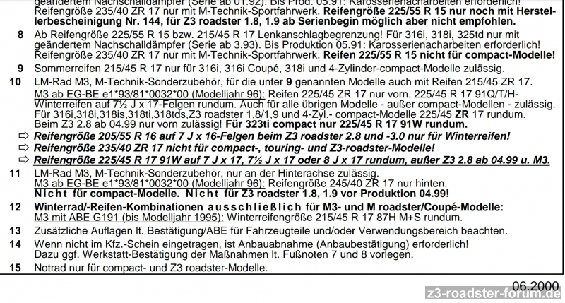 Richtig, beim Facelift (ab 4/99) hinten nicht zulässig (siehe Punkt 10).