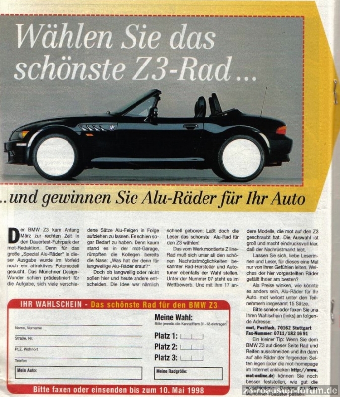 - Was die Felgen angeht, gilt auch hier: Mir ist es "der Tick zu modern" am Z3. Aber zum Glück haben wir nicht alle den gleichen Geschmack, sonst würden die Preise von nicht mehr verfügbaren Felgen vermutlich noch weiter explodieren![]()