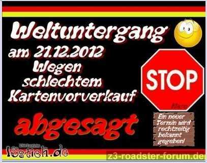 JayJay hat geschrieben:Bin gerade im Netz gesurft und lese da überall das die Welt untergeht.