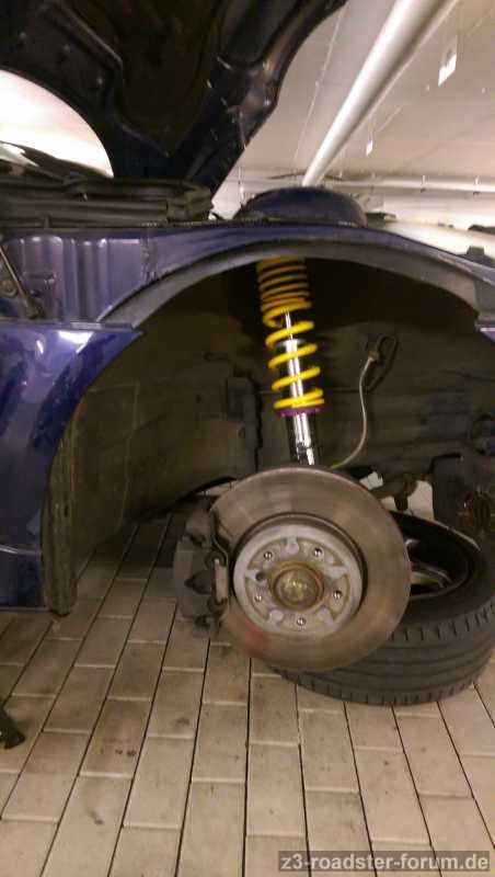 Ich habe heute an der Vorderachse die Federbeine meines KW Variante2 in Verbindung mit den Stützlagern vom M3 3.2 verbaut. Aufgrund einer nicht vorhandenen Grube in der heimischen Tiefgarage kommt die HA erst morgen dran. Diesmal aber mit Grube bei einem Kumpel.
