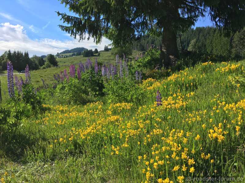 Heute im Albtal-dann Richtung Bernau/Todtnau: Die Lupinen blühen, am Boden die gelben Kleinen was auch immer, im Albtal der Fingerhut, an den Hängen der gelbe Ginster, ein super (heißer) Tag heute.