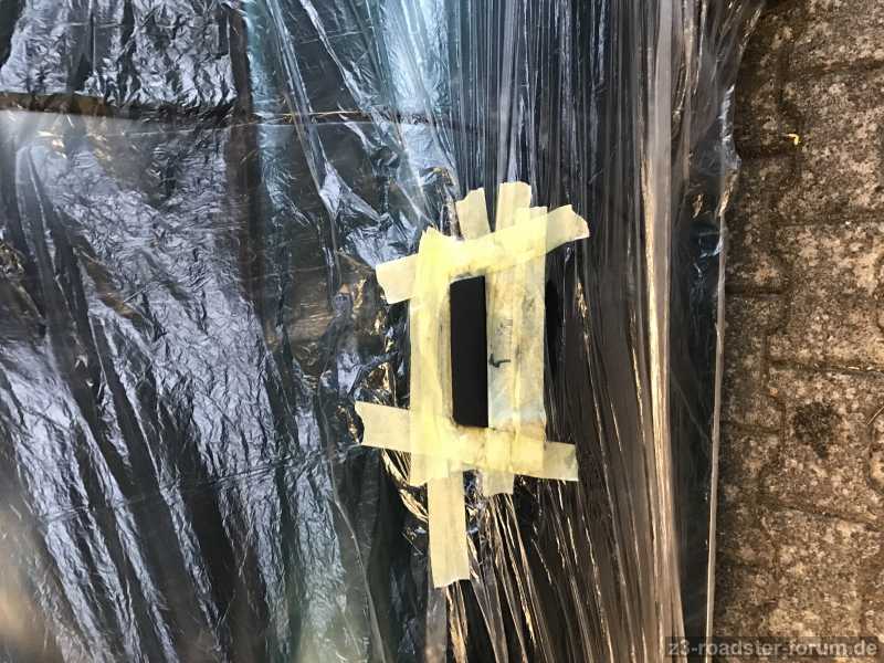 Das Verdeck selbst großzügig mit Armor All Kunststoff Tiefenpfleger gleichmäßig eingesprüht, ca. 15 min. einwirken lassen. Einen weiteren Auftrag vorgenommen und dann gleich den weiten Auftrag mit einem weichen, fusselfreien Tuch einmassiert. Das Verdeck ist nun wieder richtig tiefschwarz.