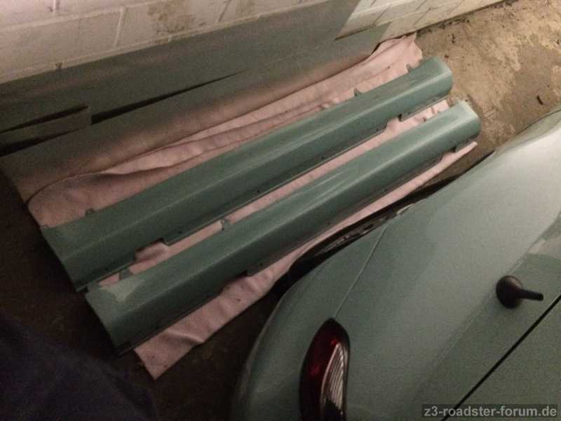 Wie schon mal in einem anderen Fred beschrieben, hat Seppo uns die Scheinwerfer aufgearbeitet, heute habe ich die Seitenschweller Verkleidungen vom lackieren geholt! Hoffentlich wird's bald wieder Frühling!