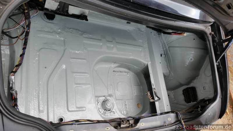 - Kofferraum überarbeitet... Hier wurde mal der Diffhalter geschweißt und irgend ein gummiartiges Mistzeug aufgebracht. Runtergeschliffen und mit Rostschutz behandelt und lackiert. Wochenende kommt dann die schöne, neue Kofferraumverkleidung und Dichtung rein... Alle Kunststoffteile im Kofferraum mit ArmorAll gepflegt