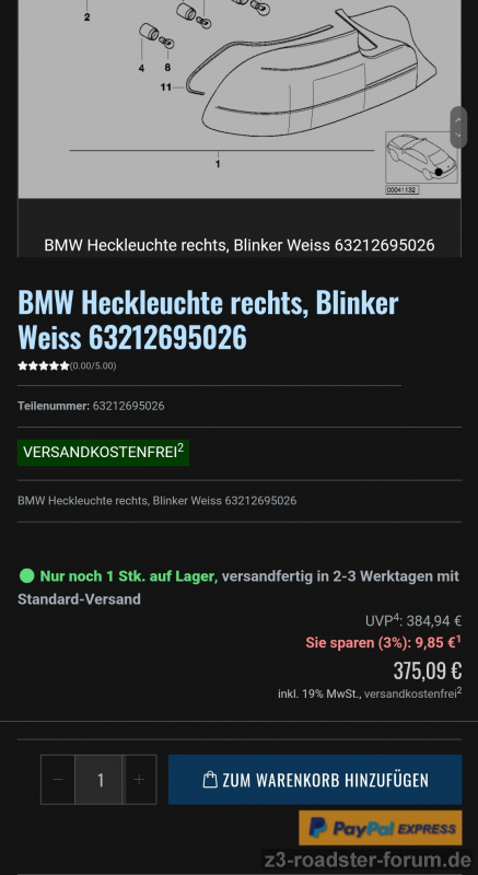 Bei Baum die letzte rechte ergattert, bei Leebmann haben die noch einige linke und beide zusammen - stimmt: 750,-€; das ist etwas mehr als die Hälfte des Gebrauchtangebotes (Preis + Versand). Die Bestätigung gerade erhalten, dass Ende der Woche von beiden Händlern die Rückleuchten kommen.