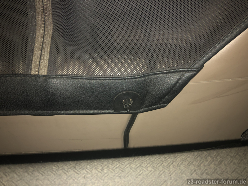 Das ist die VFL Variante mit Gummizügen vorne und hinten zum Einhaken unter der Plastikverkleidung. Die FL Variante hat nur vorne Gummizüge und wird hinten direkt über Löcher im Leder der Persenning über die längeren Tenaxschrauben inkl. Distanzhülsen auf der Rückseite des Ablagefachs geschoben und fixiert.