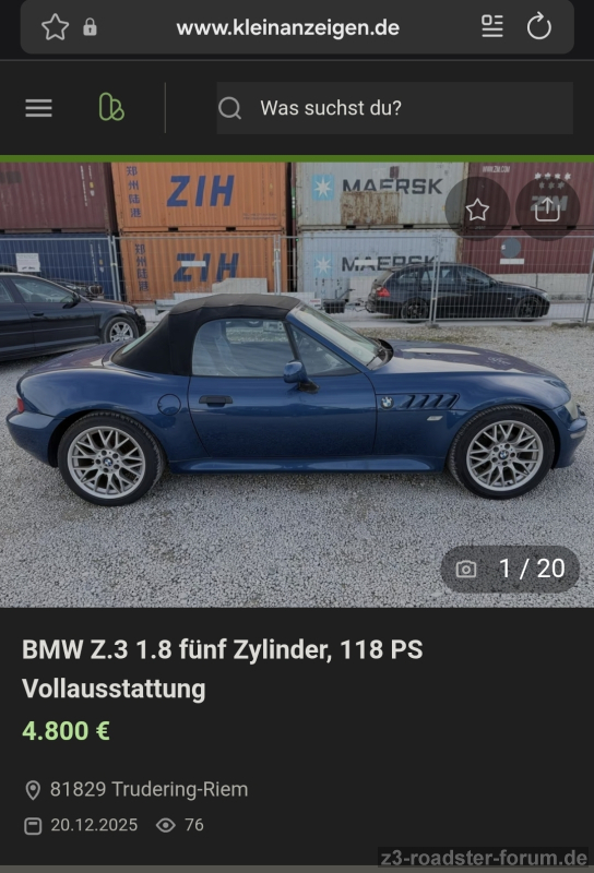 BMW Z3 - Spassmobil. : https://www.ricardo.ch/de/a/bmw-z3-bereit-fuer-dein-spassmobil-projekt-1299293108/
