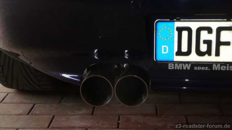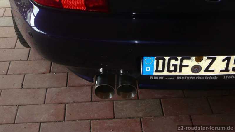 Heute nun wurde das Experiment gewagt, ich habe am ZZZ einen Magnaflow Endtopf montiert. Der hat eine EG Zulassung - auch für den Z3 2.8 - und klingt echt super. Preis Leistungsverhältnis stimmt hier 1A.