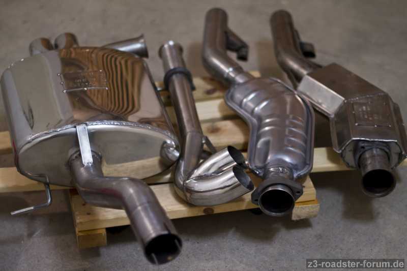 Die Anlage war mittlerweile goldfarben, die Rohre mitunter nur noch schwarz/braun und alles Stumpf (in etwa wie der Kat).