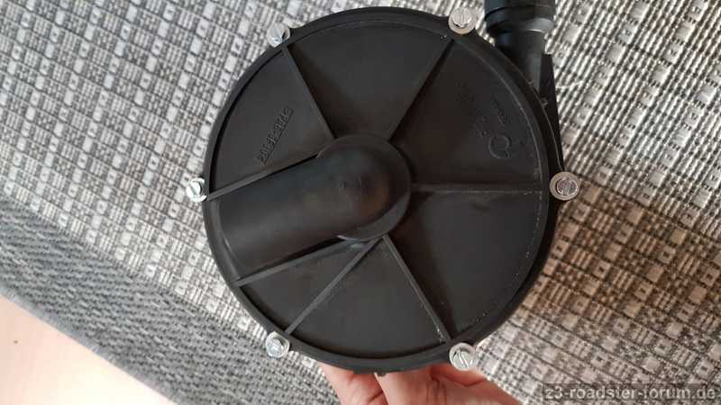 Das Auto hat beim Kaltstart immer einige Zeit gepfiffen wie ein Teekessel. Ich habe dann gesehen, dass an der Pumpe die Nieten sich teilweise verabschiedet haben wodurch das Geräusch entstand. Die noch intakten habe ich dennoch aufgebohrt und auch durch Schrauben ersetzt.