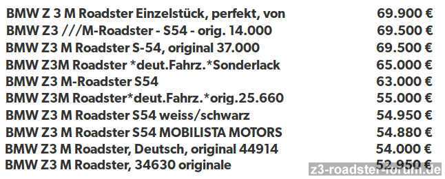 RunnerAZ36 hat geschrieben:...da ist die potentielle Wertsteigerung der nächsten 20 Jahre bereits mit eingepreist oder es ist ein klassisches „Abwehrangebot“, um den Z3 nicht verkaufen zu müssen: