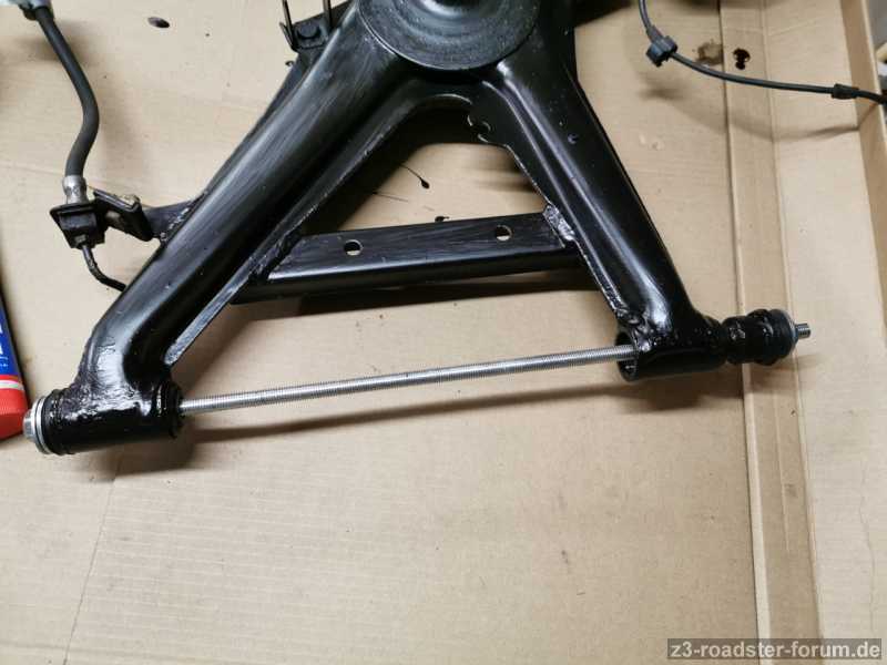 Jetzt fehlen mir noch die neuen Tankspannbänder, dann kann ich die Achse wieder einbauen. Wahrscheinlich werde ich das einzeln machen. Über der Grube am Stück seh ich da noch keine sinnvolle Möglichkeit ohne Gestell und Heber.