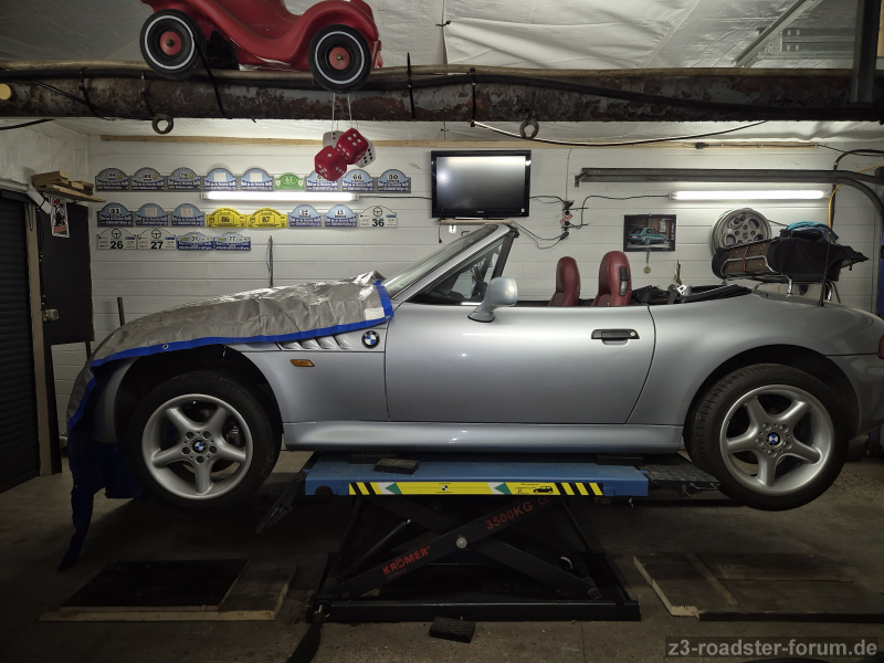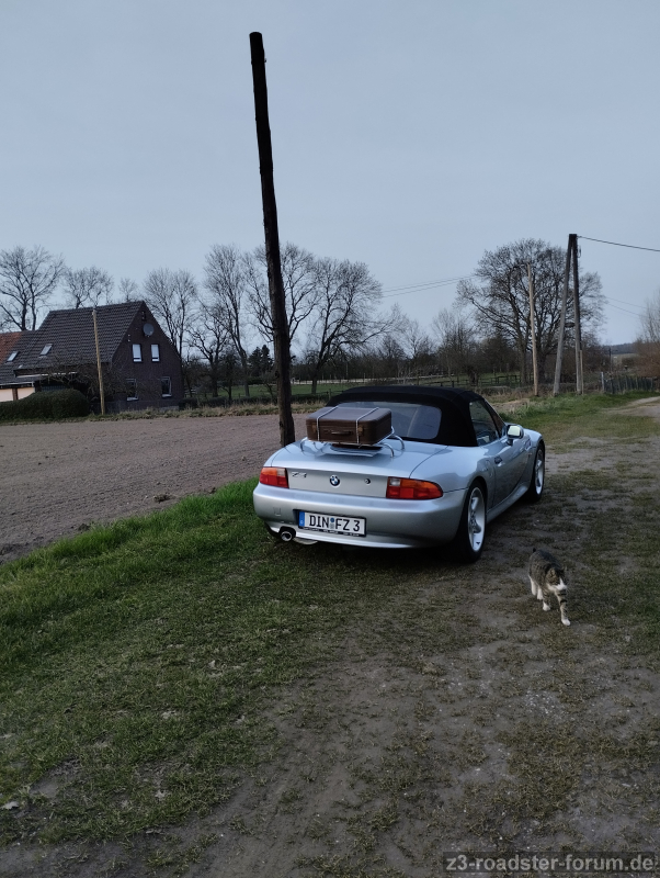 Verzeiht die Plane auf der Haube, eine Eternitplatte vom Dach ist gerissen und beschert mir bei Regen etwas Wassereinbruch in die Männerhöhle.