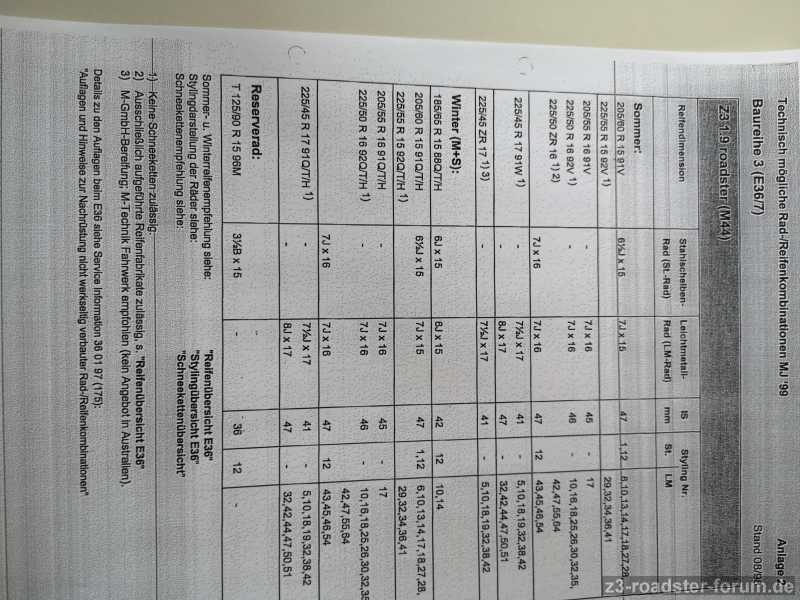 Nicht auf dem Z3 zulässig. Deswegen nehme ich Die Reifen nur zum Wechseln, damit die Rundstylingfelgen nachlackiert werden können. Überlege noch was man mit den 205er Allwetterreifen mit 80% Profiltiefen anstellen könnte. Evtl. Möbel bauen