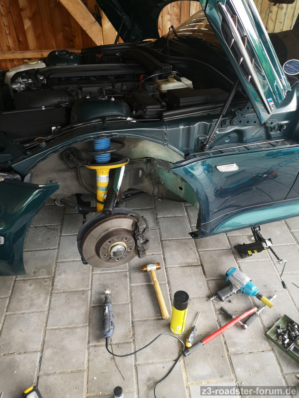 Die von Jochen erworbenen Radhausschalen montiert... Einen Haufen Dreck gefunden... Und tatsächlich ein ganz kleines bisschen Rost entdeckt (und gleich entfernt + versiegelt...