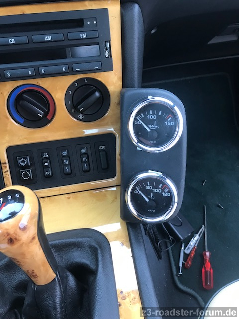Zur Optik chrom/ohne chrom: Ja, die breiten VDO-Ränder sind noch nicht ideal. Die breiten schwarzen Kunststoffränder aber auch nicht. Muss wohl noch ein bissl probieren - wie gesagt, ich denke da an Chromringe z.B. von den Heizungsbedienelementen. Mal gucken, ob ich die irgendwo auftreiben und ob man die kombinieren kann...