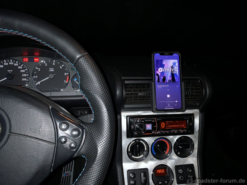 Die Position ist so aber für mich erstmal gut; die Sicht wird nicht beeinträchtigt und für den Blick auf die Navi-App muss ich nicht bis runter zum Schaltknauf schauen.