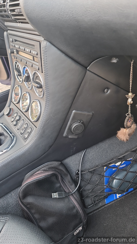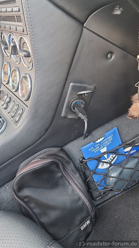 Heute war die 3.0-USB-Ladebuchse das "Projekt". Mich hat die Notlösung im Netz Fußraum Beifahrer schon arg gestört. Darum hat sich der USB-Deckel (ab 04/99) als Halter förmlich angeboten. Jetzt bin ich ready for Schönberg.