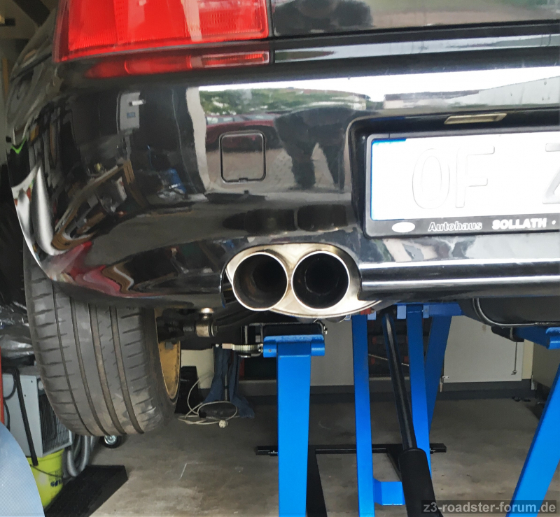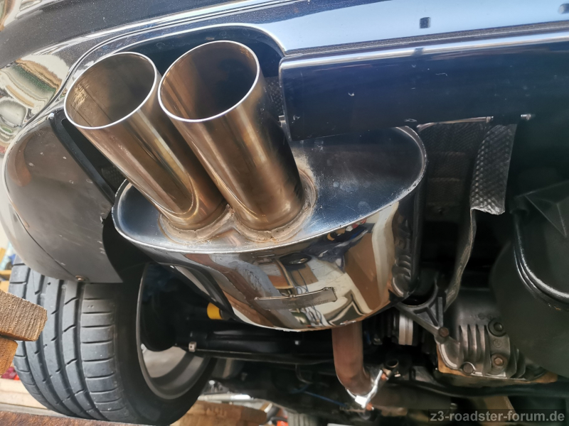 Bastuck M52 Tü mit 2 x76 passt bis auf die inneren kannten des Ausschnitts weil der Topfkörper nah am stoßfänger ist, ist aber unsichtbar von aussen zu lösen.