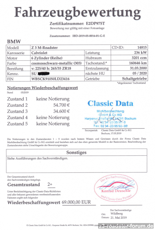Sobald Gebrauchspuren wie kleine Steinschläge in der WSS, am Lack und Abnutzungsspuren im Innenraum vorhanden sind, bewegen wir uns bewertungstechnisch zwischen 2 und 3.
