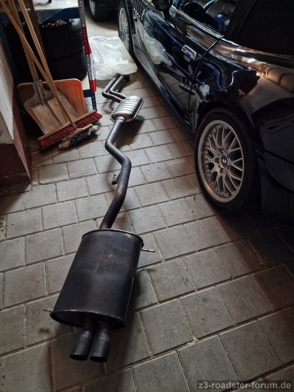 Heute fand die komplette (noch original am Stück) und nahezu neuwertige 2.8er M52TU-Abgasanlage endlich den Weg zu mir. eisi hat sie freundlicherweise bei sich in der Gegend abgeholt und eingelagert. zetti70 war so nett und hat sie mitsamt seiner VFL Stoßstange und der von mir noch bei eisi's Black Week gekauften FL Stoßstange und den Türpappen für meinen Zetti-Nachbarn thohef abgeholt und mit nach München genommen. Aber nicht nur das, er hat sie mir heute sogar noch vorbeigebracht (immerhin eine gute Stunde einfache Fahrt!!)