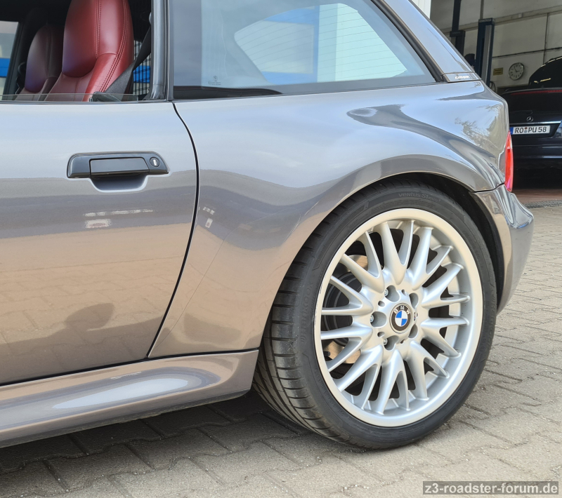 Zunächst habe ich alles etwas abgeschliffen, die Domaufnahmen dann grundiert und in Wagenfarbe (Titansilber) lackiert. Zum Schluss noch etwas Klarlack drauf und die Strebe bestmöglich, mit dem, was ich da hatte, aufpoliert.