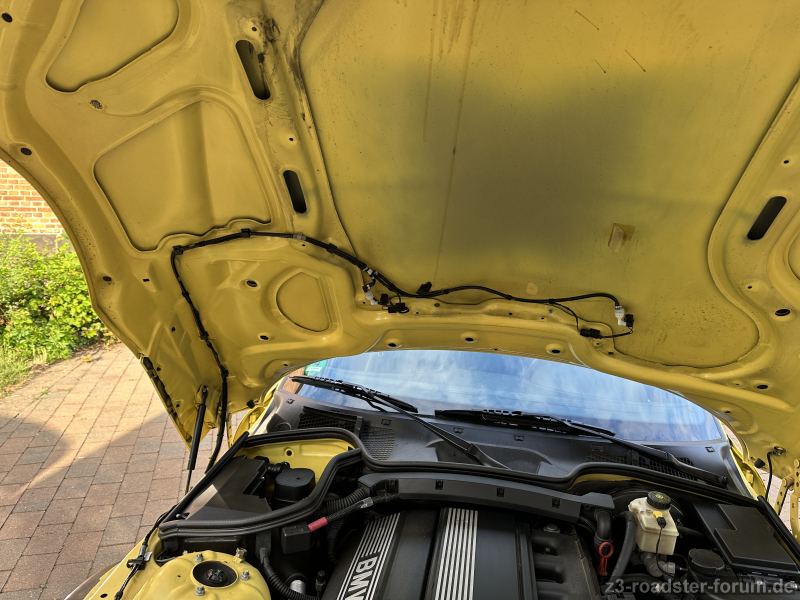 Heute ging es weiter mit Teil 2 von "Licht und Sicht" (nachdem gestern schon die beheizbaren Außenspiegel eingebaut wurden). Die Waschdüsen wurden gegen die beheizbare Version getauscht, gleich mit neuen Rückstauventilen und dem notwendigen Kabelbaum. Da der von BMW mit dem Schlauch zusammen geliefert wurde, ist ab der Pumpe jetzt alles neu. Muss nur noch die Schallisolierungsmatte wieder rein, aber das dürfte in wenigen Minuten erledigt sein. Das Einstellen der Waschdüsen wird zeitaufwendiger gewesen sein.