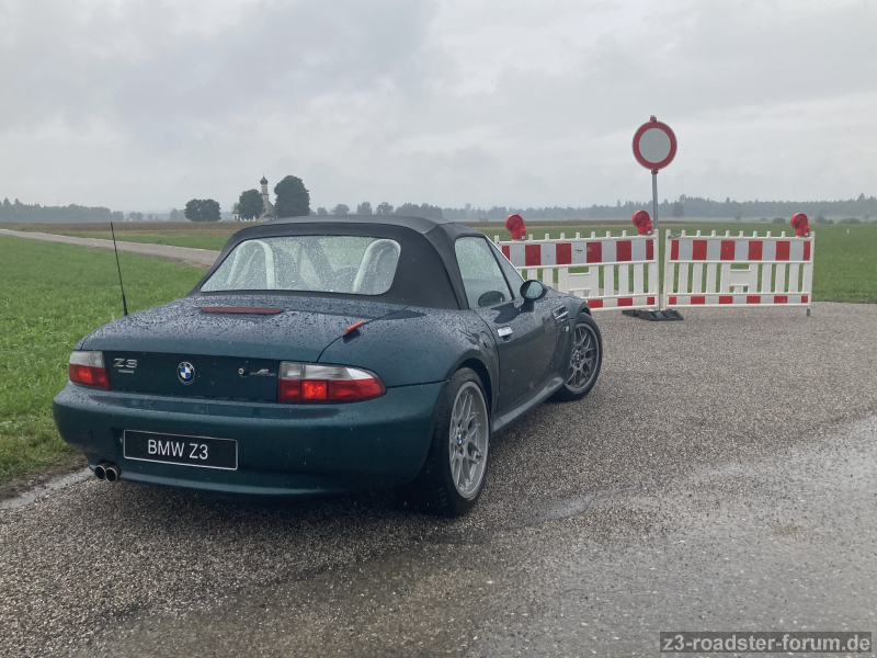 Die Fahrt nach Graubünden hätten wir auch mit einem Boot machen können. Den ganzen Weg in der Schweiz hat es geschüttet wie aus Eimern. An einigen Orten war die Feuerwehr tätig. Soviel Wasser hat der Zetti noch nie erlebt. Zeitweise war auch das Verdeck am Dreieckfenster oben und an der Trennstelle Beifahrerseite undicht. Als dann ein SUV neben mir in eine Wasseransammlung Spurrille gefahren ist … wurde ich etwas geduscht. Volle Breitseite direkt unter Dachkante konnte der Gummi nicht bewältigen.
