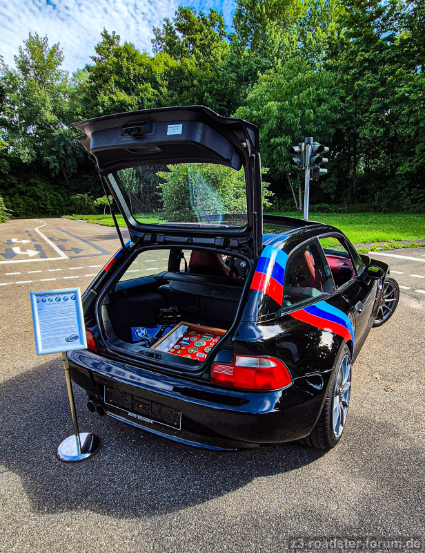 Mein Verein wurde dieses Jahr 35 Jahre alt, und am Wochenende war die zugehörige Feier. Wir im Vorstandsteam haben unsere Sammelgebiete ausgestellt und so beschloss ich meine BMW-Medaillen-Sammlung einfach im Coupe auszustellen... Ein Novum in der Numismatik, da es noch nie eine Ausstellung in einem Fahrzeug gab... Geschweige denn in einem Z3