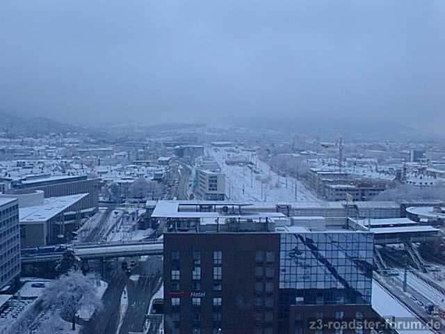 Das Wetter spielt total verrückt, vorgestern ca 10 Grad plus mit einem Höllen Sturm und Orkan, heutemorgen dichter Schneefall, dass man die Hand nicht vor den Augen sieht und über Nacht 5 Cm Neuschnee, totales Verkehrschaos auf den Strassen, natürlich nichts geräumt, die Autos fuhren mit 30 - 40 km/h