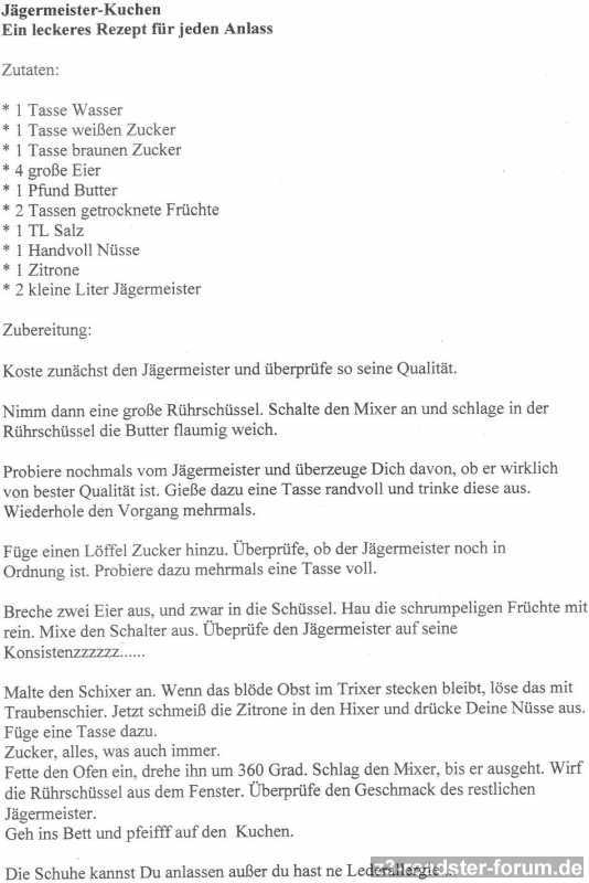Sisch waidere ffüenff odda siehm Wixki innen Glas sisch unn dann unn so. Di Drute weehrent drrai Schlinn'nt (issauch egal) waiderbrean un all ssehn Minud'n pinkeln. Wenn ueerntwi möchlisch, ssum Trathuhn hinkrieschn unn derf Ohwn aus'm Viech ziehn. Nommal ein Schlugg geneemign. un anschliesnt wida fasuchen, das Biest rauszukriegn. Den fadammt'n Vogel vom Bodn aufflaesen unn uff ner Bladde hinrichten. Uffbasse, dass nitt Ausrutschn auf m schaissffettichn Kuechnbodn. Wenn sisch drossdem nitt fameidn fasuhn wida ufssuschichtnodersohahahaisallesjaeeeehscheissegaaal!!!!!!