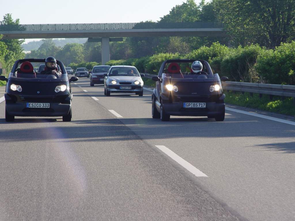 Unsere Fahrt Richtung Bodensee war bei sonnigen Wetter absolut genial, Unterwegs trafen wir auf ein Rudel Smarts. Darunter sogar 2 Crossblades. Wow, so ein Teil habe ich in freier Wildbahn noch nie gesehen. Die Jungs waren super gut drauf und warfen sich für uns in Pose. Andreas lies es sich natürlich nicht nehmen, die Autos ins Visier zu nehmen.