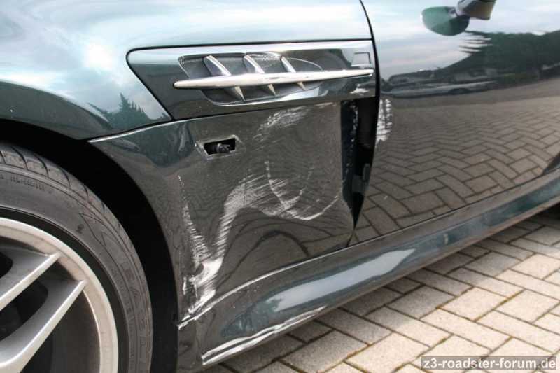 Folgende Schäden, Schweller, Türe, Seitenteil vorne, Seitenblinker und die M-Kiemen. Die Motorhaube hat scheinbar nix abbekommen.