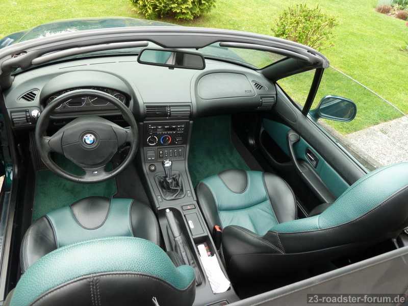 Es handelt sich um einen Z3 2,8, Bj. 1998 mit EZ in 04/1999. Er ist in Bostongrün mit Leder Oregon Moosgrün/Schwarz.