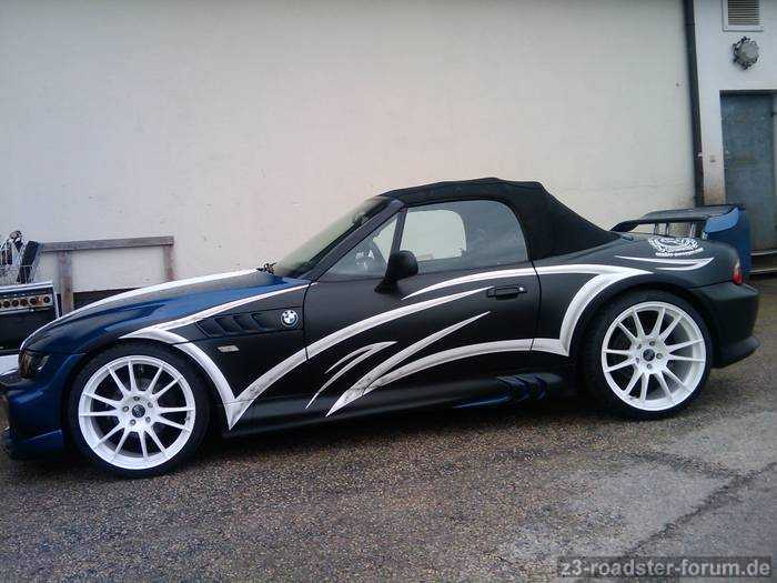 sailor eingestellte Z3-Bild kam durch eine ähnliche Notlage zustande: Der Besitzer konnte sich nur mittels einer provisorischen Farbausbesserung in Tipp-Ex-Weiss seiner wüst zerkratzten Seitenpartie helfen. Das wird schon wieder ordentlich gemacht, wenn Geld in der Kasse ist, da bin ich mir sicher.