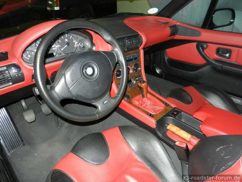 Aber jetzt endlich zum Fahrzeug, um das es hier ja geht, meinen schwarzen Z3, Baujahr 04/2002 mit dem 3.0 Sixpack und 150.000km am Tacho. Die Innenausstattung ist die erweiterte Lederausstattung in traumrot/schwarz; nicht jedermanns Sache, aber für mich war das neben den 3.0i Motor ein wichtiges Kaufkriterium.