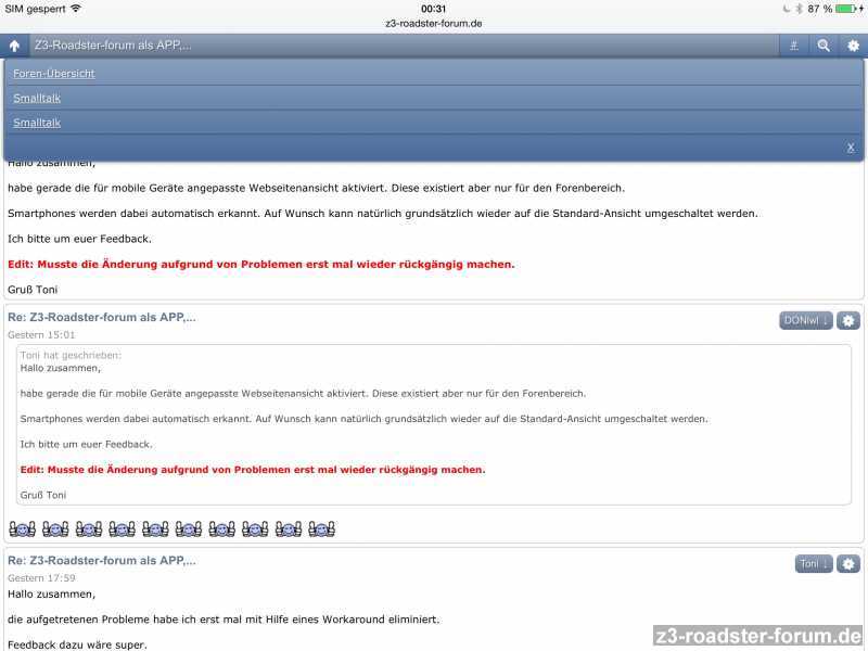 habe gerade die für mobile Geräte angepasste Webseitenansicht aktiviert. Diese existiert aber nur für den Forenbereich.