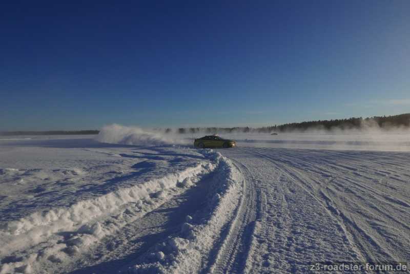 Zweieinhalb Stunden Flug von Hannover aus, eine Stunde Bustransfer und dann ging´s los: BMW betreibt bei Arjeplog ein Testzentrum (ich habe noch nie so viele Erlkönige aller Baureihen gesehen…), am Wochenende wird die Anlage für das Ice Perfection Training genutzt. Das heißt ein ganzer See steht zur Verfügung! Mit Schneefräsen werden Straßensysteme in den Schnee gefräst, vom Handlingkurs mit großem und kleinem Slalom über einen Kreis mit ca. 500 m Durchmesser für´s Driften in die Runde bis zu einer Rennstrecke (bis ca. 120 km/h) ist alles vorhanden.