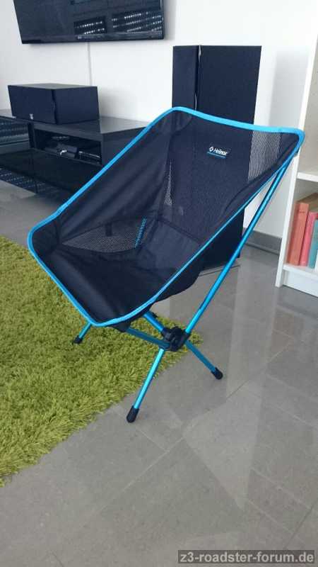 - Campingstühle und Campingtisch - Puh, da habe ich lange recherchiert. Warum lange? Recht schnell habe ich herausgefunden, dass es sehr klein faltbare Campingstühle und -tische gibt. Nur kosten die vom Design-Papst fast 100 EUR. Tut's da auch der China-Abklatsch? Nein. Ich fahre noch lange Z3 und ich reise gerne. So ein Stuhl hält vom Markenhersteller (Helinox Chair One heißt das Gerät) hoffentlich lange. Also habe ich jetzt zwei Stühle, die verpackt etwa so groß sind wie ein größerer Kulturbeutel und bloß 900 g wiegen. Foto ist unten zu finden. Diese lassen sich links in der engsten Stelle des Kofferraums super verstauen. Der Tisch ist auch nur ein Gestell mit einer spannbaren Stoffbahn. Die Stühle halten bis 145 kg und haben am Wochenende ihren ersten Test mit Bravour bestanden.