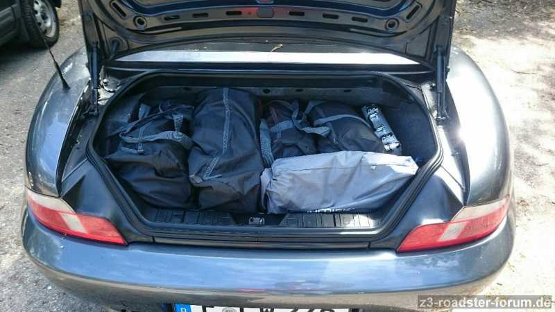 Ich war übers Pfingstwochenende an der holländischen Nordsee und im August geht's in die Normandie. Seit Januar mache ich mir also Gedanken darüber, wie ich mein Gepäck optimal im Z3 unterbringe. Der Pfingsttrip sollte als Testlauf dienen.