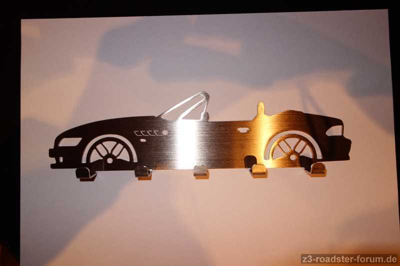 vielleicht sucht einer ja noch ein orginelles Zetti-Accessoire. Ich habe bei Ebay-Kleinanzeigen (auch im Netz unter http://edelstahlboard.de/) ein Schlüsselbord mit Z3-Roadster-Kontur gefunden. Auf Anfrage würde der Hersteller auch ein Z3-QP Modell machen. Man kann sich aus verschiedenen Designs die Felge aussuchen.