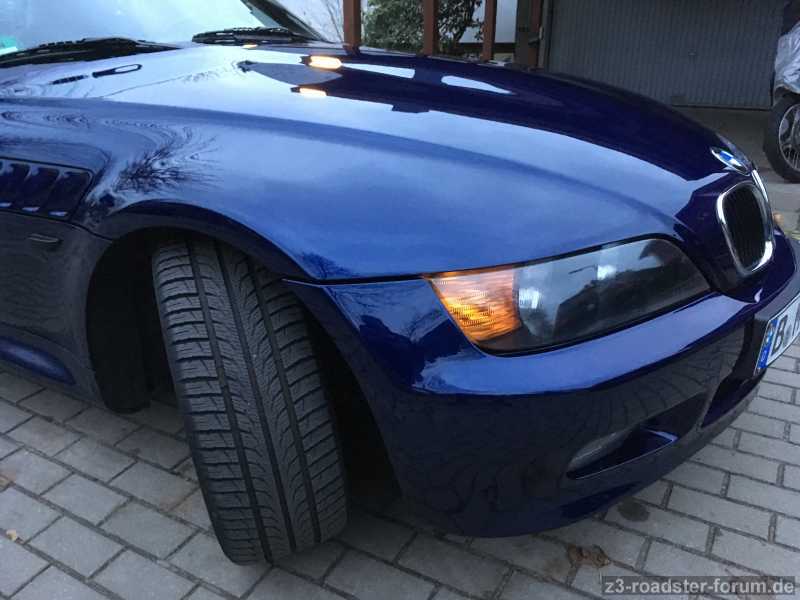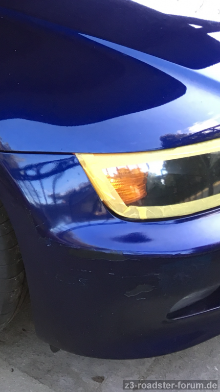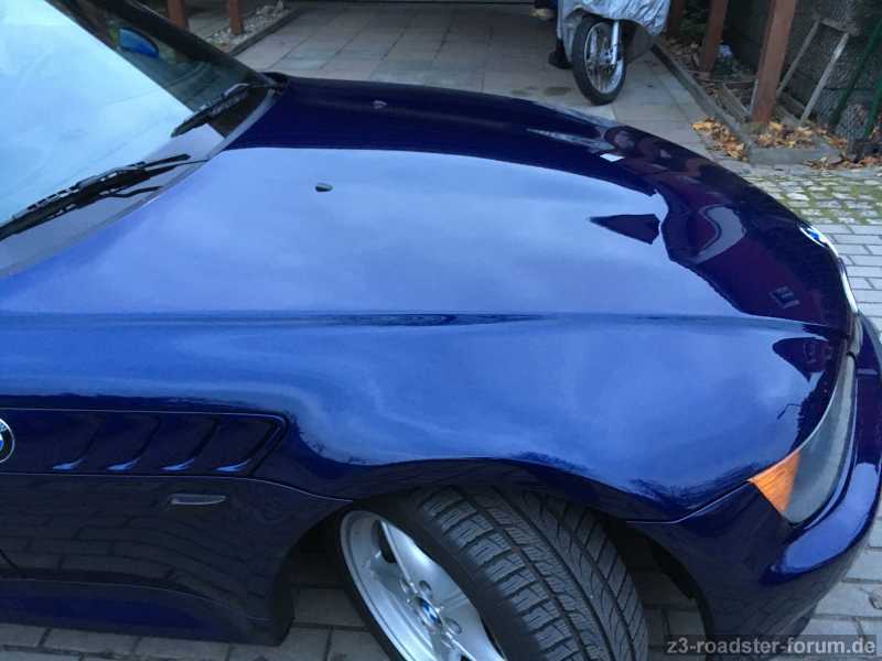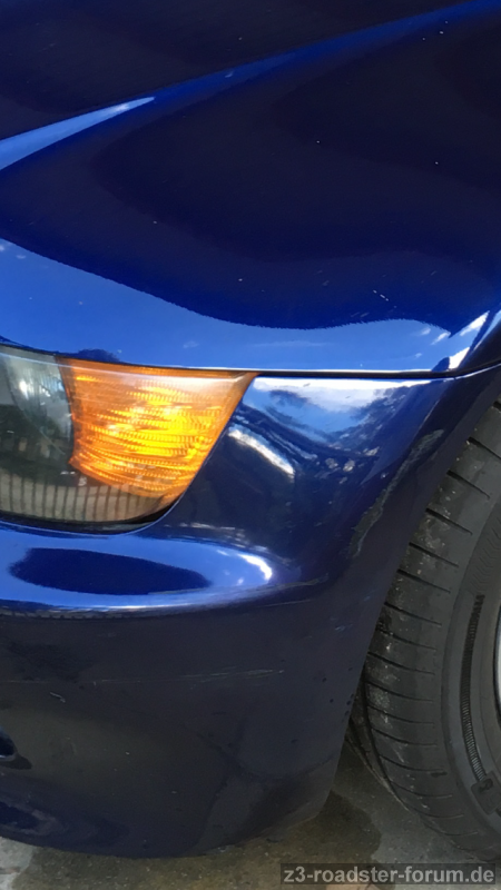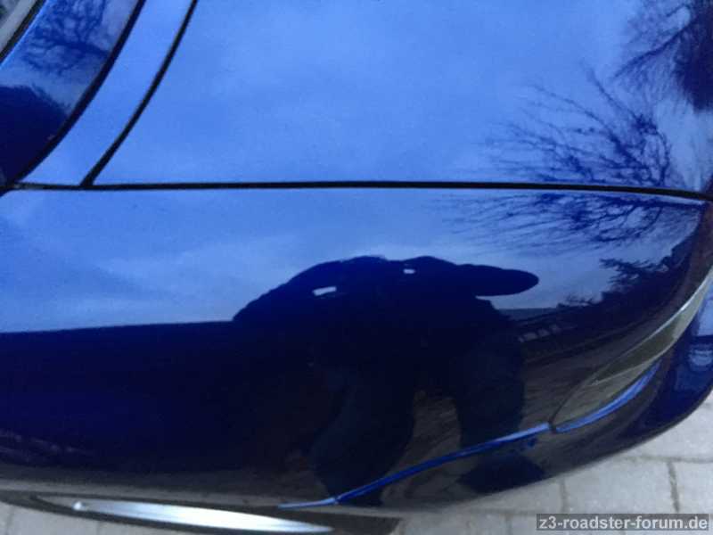 Und ... ich bin begeistert. Die Jungens haben echt gezaubert und sehr gute Arbeit abgeliefert. Motorhaube, Stoßstangen vorn und hinten wie neu und vom Antennenloch ist aber auch gar nix mehr zu sehen. Die mitgelieferten Spoilerlippen und M-Kiemen wurden auch noch lackiert. Spaltmaße wie zuvor —> Top.