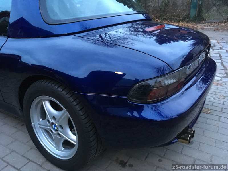 By the way haben sie es geschafft den Doppelrohr-Endtopf richtig mittig auszurichten, haben die Stoßstangen-Antenne verbaut und auch die ehemals verformte vordere Nummernschildaufnahme sieht aus wie neu. Auto wurde noch komplett poliert und gewaschen.