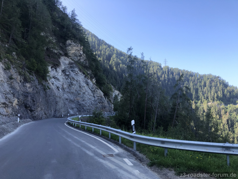 Der Konsum des ZZZ über die komplette Zeit belief sich auf 8,1ltr/100km. Was bergauf geht, geht auch wieder runter. Die Geschwindigkeit in der Schweiz ist begrenzt und sollte möglichst eingehalten werden. Eine Überschreitung könnte die Urlaubskasse schröpfen. Schöne Sache: Hier hat nicht jedes Kaff Zone 30 in der Ortsdurchfahrt. Die Lkw sind auf der Landstraße mit 80km/h keine Einbremser. Die einzige mobile Kontrolle sahen wir auf der Rückfahrt am Jaunpass. Die war hauptsächlich für Motorräder. Distanzmessung von unten nach oben zum Pass.