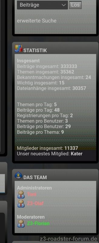 Mir ist aufgefallen, dass es nur noch 140 Beiträge dauert, dann sind es 333.333 seit Bestehen