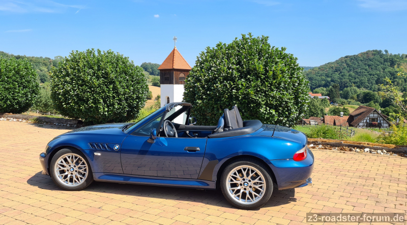 Ich wohne am Rande der schwäbischen Alb und hier beim weltgrößten - schwäbischen - Familienunternehmen beschäftigt, das weltweit als KfZ Lieferant Nummer 1 bekannt ist. Auch wenn ich hier bisher 18 Jahre im Automobilelektronik Bereich tätig war, waren die Vernunft und der Pragmatismus immer stets größer als die Leidenschaft... weshalb wir als Familie mit Frau und 2 Kindern stets immer nur ein familientaugliches Auto Typ Mini-Van hatten. Da wir jetzt aber 3 Fahrer sind und meine Frau stärker in den Beruf einsteigen will, benötigten wir ein weiteres Auto. Nicht ganz ernst gemeint zeigte ich ihr ein Inserat von einem schönen schwarzen Z3 und fragte sie, ob das denn was wäre. Das Design diesen Wagens fand ich nämlich schon seit seiner Erscheinung wunderschön und zeitlos elegant. Und der Hammer: Meine Frau war gleich von den Photos angetan und zeigte sich "wohlwollend"