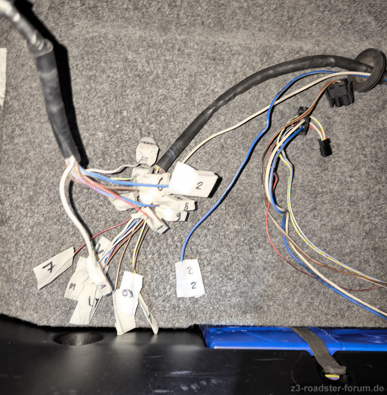 Alle Kabel liegen jetzt nummeriert und isoliert im Kofferraum.